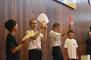 まず、立会演説会で自分たちの公約を発表したのち、投票を行いました。