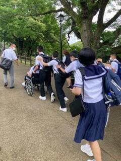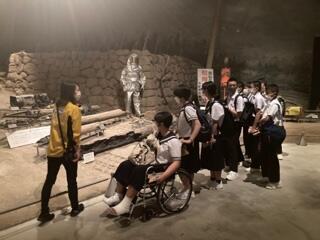 熊本地震の震災の爪痕がまだ残るものの、天守閣は立派に再建されて、上まで登ることができました。男子は階段で、女子はエレベーターで、展示物を見ながら登りました。みんな、写真を撮りながら熱心に見学していましたよ。