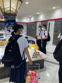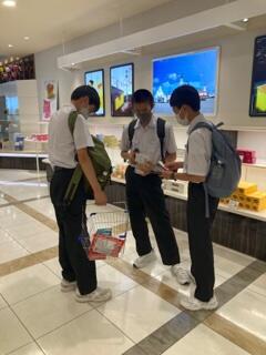 長崎カステラランドで休憩中です。この旅行、最初のお土産タイムです。子どもたち、早速、品定めしながら買っています。みんな、真剣です。