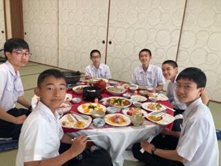 今日の夕食は、長崎らしい円卓での卓袱料理でした。子どもたちは、くつろいだようすで、会話しながら楽しく食べていました。この後は、お風呂、班長会議、消灯の予定です。きっと、ぐっすりでしょう。