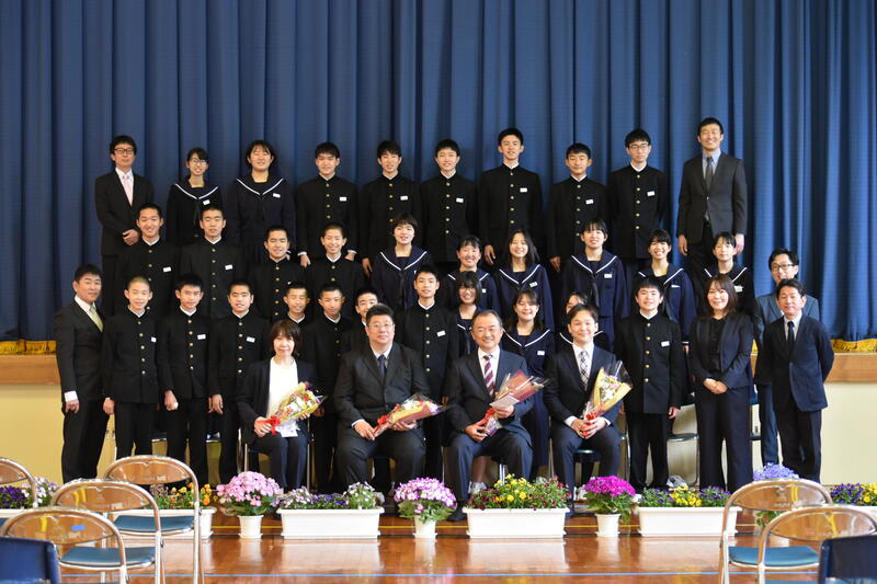 3月30日(木)9時30分から、西米良中学校体育館で離任式が行われました。