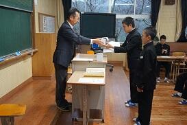 第10回宮崎県市町村対抗駅伝競走大会の西米良選手団結団式が昨日(11日)の18時から基幹集落センターで行われ、本校からは那須翼君、黒木愛莉紗さん、黒木琉偉君、那須心美さん、濵砂康生君が参加しました。康生君は選手宣誓も行いました。
