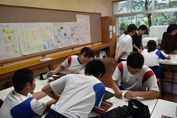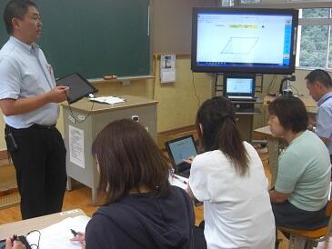 村所小学校との合同職員研修会を実施しました。11月14日の公開授業3本について、県教育委員会の方からも助言をいただきながら授業の進め方を検討しました。研究公開当日の本校の授業は、2年生の数学と3年生の理科及び全校での総合的な学習の時間です。総合的な学習の時間は、宮崎大学の学生さんとの遠隔授業になります。
