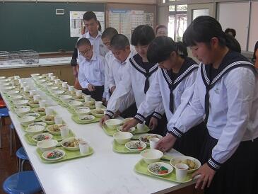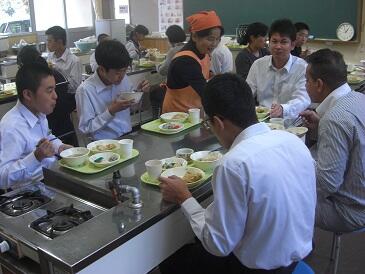 早朝からたくさんの村婦人会の方々においでいただいて、郷土料理教室を行っています。2年生と一緒に鹿の竜田揚げ、いなりずし、白和え、豚汁、寒天といったごちそうができつつあります。今日の昼食は全校生徒も職員も郷土料理をいただきます。婦人会の皆様、本当にありがとうございます。