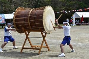 薄紅葉 正午(ひる)を告げなむ 米良太鼓