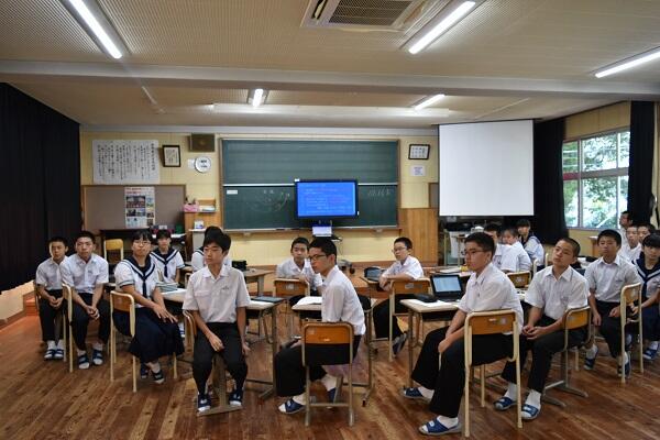2校時の国語は、全校生徒で「ビブリオバトル」をやっていました。4班に分かれて、自分が読んだ本を紹介します。各班の代表者を1名ずつ決めて、代表4名による決勝戦を行います。それぞれが選んだ本のよさが伝わってきて、読んでみたいと思いました。