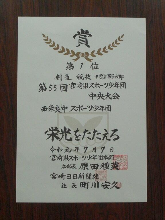 7日(日)に宮崎市で開催された「第55回宮崎県スポーツ少年団中央大会剣道競技中学生男子の部」において本校の剣道部が優勝しました。