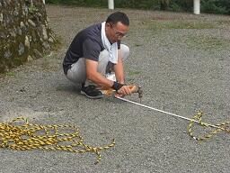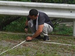 村職員の室井さんがロープで駐車場の区画表示をしてくださいました。職員の車がない日が作業をしやすいということで、昨日(15日)に殆どの作業を終えられました。今朝は来客用スペースをつくっておられます。