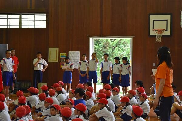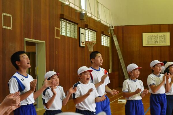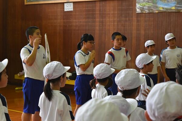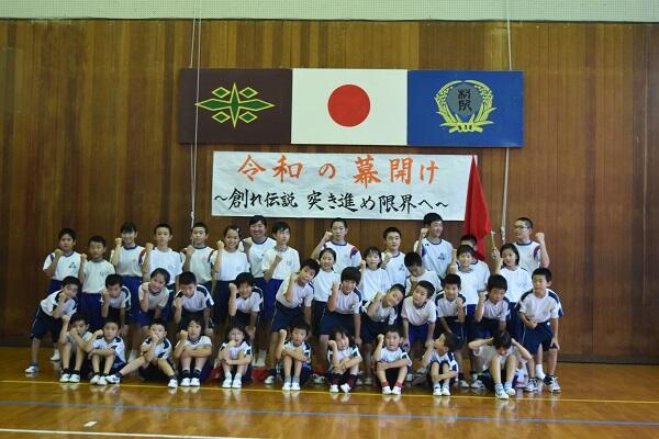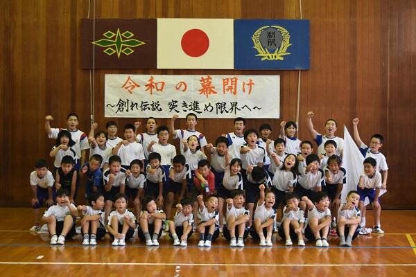 「メラリンピック(小中・村民一体となった運動会)」の小中合同結団式を村所小学校で行いました。