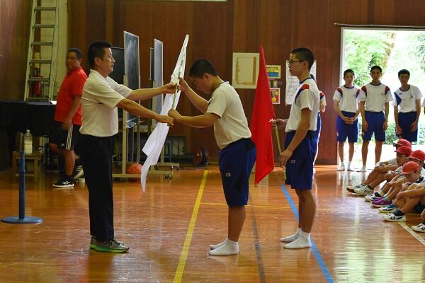 ↓ 各団長に団旗を授与