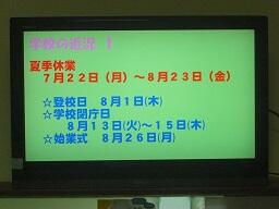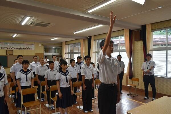 <終業式> 学年代表による1学期の反省の発表、夏休み中の諸注意