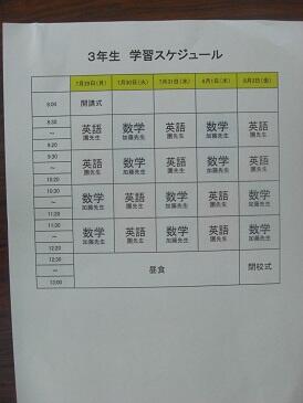 夏期学力向上セミナーの時間割