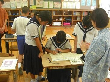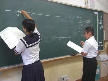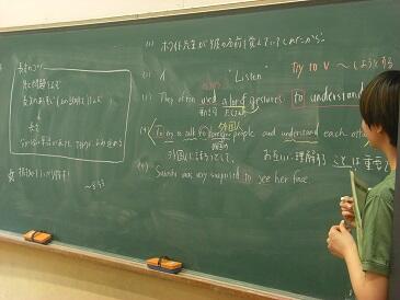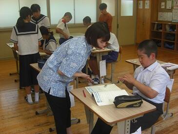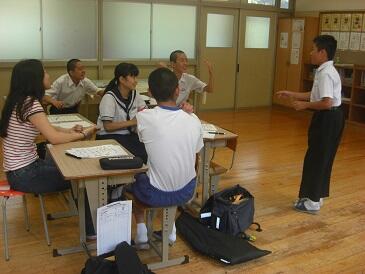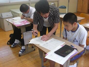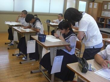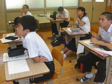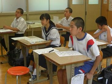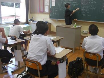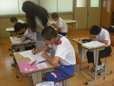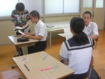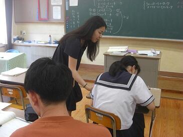 2年生は、英文で書かれた数学(図形)の問題を解いていました。数学の問題を解くために、英和辞典をひいて、まず問題文を日本語に訳す作業を行います。興味深い展開でした。この5日間、年齢の近い学生さんにフレンドリーに教えていただき、よい機会をいただいたと思います。4名の学生の皆さんと関係者の皆様、ありがとうございました。