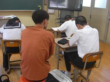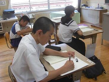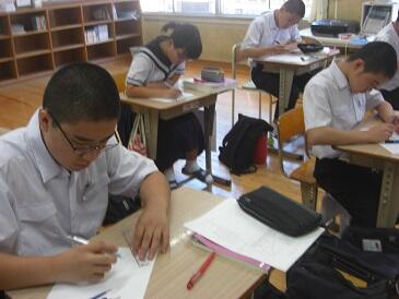今日も午前中は夏期学力向上セミナーが行われています。午後は全校集会や学級での活動を行います。また、夏休みに恒例となっている「ようこそ先輩」も行います。今春本校を卒業した生徒が来校して、各高校での学習や生活の様子を直接話してくれます。