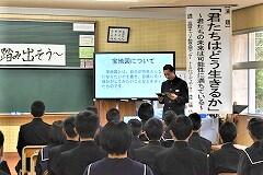 宮崎県キャリア教育支援センター トータルコーディネーターの水永正憲先生の講演「君たちはどう生きるか」~君たちの将来は可能性に満ちている~ 自分たちの将来がとても楽しみになるお話でした。「何のために働くのか」「自分にとっての幸せとは?」これからしっかり考えていきたいと思いました。