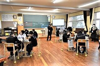 1月24日(火)に、本年度3回目の重点支援校訪問が行われました。中部教育事務所と西米良村教育委員会の先生方が来校され、授業参観と本校職員へのフィードバックをしてくださいました。今回は3年生は受験前と言うこともあり、1,2年生の授業を中心に5つの授業が行われましたので、紹介します。