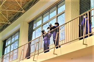 1月24日(火)3年生は明日からの私立高校入試に向けた事前指導の時間。担任の先生に促されて、窓から外を見下ろすとそこには、1,2年生たちが勢ぞろい。先輩たちの高校入試全員合格を祈って、エールを送ってくれました。うれしいですねー。その姿を見つめる3年生もいい笑顔。きっと元気づけられたことでしょう。