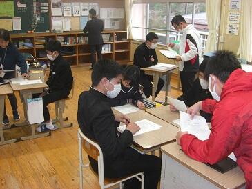 3年生がそれぞれの高校を受験しますので、前日の指導を行いました。明日は平常心で全力を発揮してくれると思います。