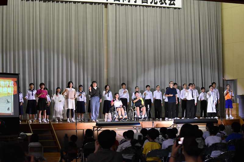 今年の小中合同学習発表会のスローガンは、「創れ!ぼくらの物語を! 見せろ!ぼくらの成長を!~西米良へ 感謝を込めて~」でした。小学生、中学生どちらも約1か月の練習成果を存分に発揮できたと思います。涙あり、笑顔ありの思い出に残る素敵な1日となりました。
