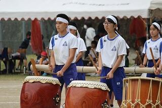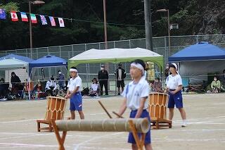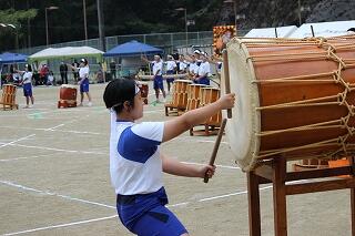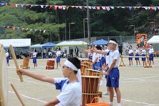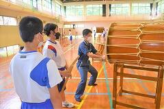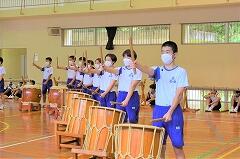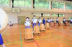 始業式の翌日から、メラリンピックに向けて米良太鼓の練習が始まりました。西米良中に引き継がれている伝統文化「米良太鼓」。話には聞いていましたが、全校生徒でたたく太鼓と竹の音は、ものすごい迫力です。真剣に太鼓と竹に向き合う生徒たちと、毎回、指導に来てくださるたくさんの先輩方。素晴らしい光景です。1学期から音楽の時間に練習していた成果で、初めてにもかかわらず、一通り通すことができました。が、もちろん先輩方から見たら、まだまだのレベル。バチの握り方やたたき方、姿勢等、とても熱心に指導してくださっていました。 本番まで続く練習。すでに、生徒たちの手にはマメがたくさんできていました。きっと素晴らしい演奏をお見せすることができると思います。乞うご期待ください。