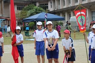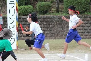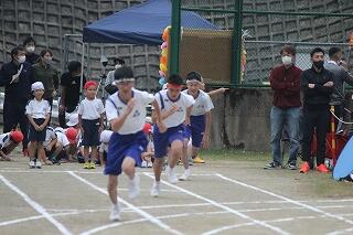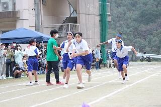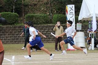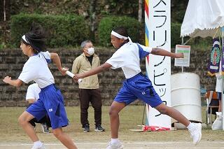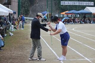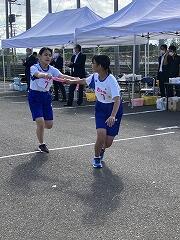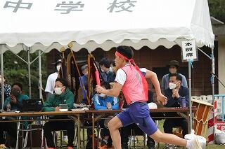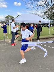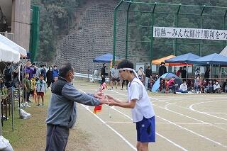 みんな、これまでの練習の成果を発揮して、一生懸命の激走を見せてくれました。結果は、女子駅伝が9位、男子駅伝が8位でした。がんばって!という思いを込めたタスキを次の人に渡す姿が印象的でした。男子のアンカー区間6区では、3年生の中武瀬成くんが2位と1秒差で区間賞を獲得しました。また、ロードレースの部も、全員が見事完走。その中で、男子の部で、1年生の中武勇翔くんが第1位でゴールテープを切りました。みんな、本当によく頑張りました。