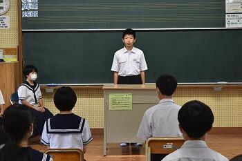 7月20日(火)、1学期終業式を行いました。はじめに、5名の生徒が1学期の反省と2学期の抱負について発表しました。これまでの自分の取り組みを振り返り、今後に生かしていきたいという意気込みがとても感じられる発表でした。