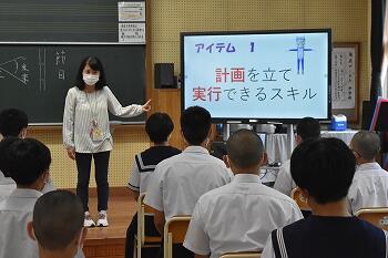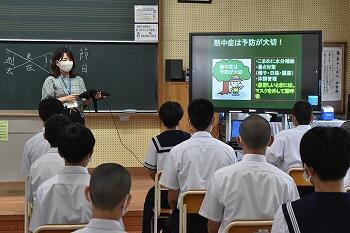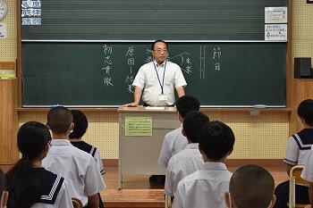 また、校長先生からは、「節目を大事に」をテーマに、1学期の生徒の成長ぶりをたたえる話がありました。その後、学習面では夏休み中の課題の取り組み方、生活・健康面では夏休みの安全な過ごし方、保健面では熱中症と生活のリズムをくずさない事についての話がありました。