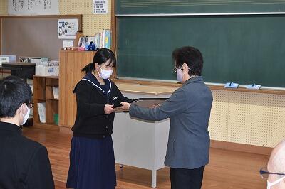 3月24日(金)令和4年度の西米良中学校修了式を行いました。各学年の代表生徒による修了証授与と作文発表が行われ、最後に校歌斉唱をして締めくくりました。