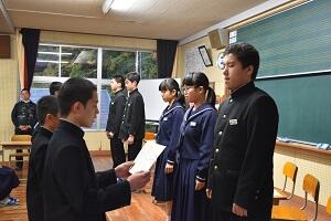 生徒一人一人がたくさんの役割を担って慌ただしく活動する中にあって、特に生徒会役員として全校をリードしてくれた人たちに感謝します。また、新しく役員になった人たちには「ワン・チーム」としてのまとめ役をよろしくお願いします。