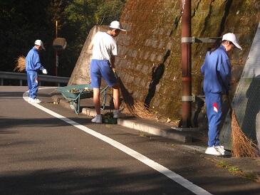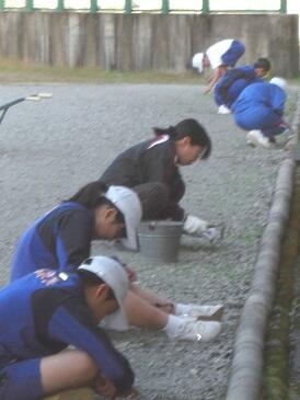 毎年恒例の行事ですが、一昨年からは研究公開が始まったこともあり、来校者を迎える準備にもなっています。落ち葉は後から後から落ちてくるのできりはありませんが、「共汗」「共働」という言葉もあるように、生徒と職員がみんなで同じ作業をすることにも意義があります。来校者を迎えるという心の準備もできてきます。