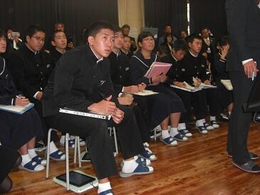午前中は、2年生の数学、3年生の理科、全校の総合の授業を行ったあと、授業についての研修会をしました。午後は講演会等を行います。