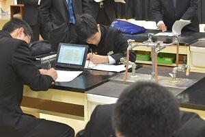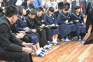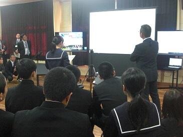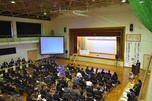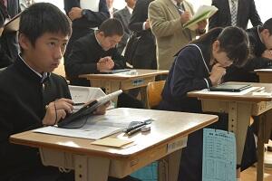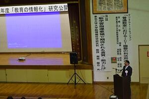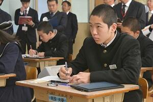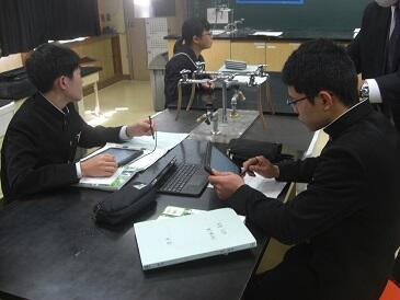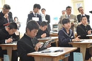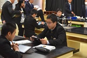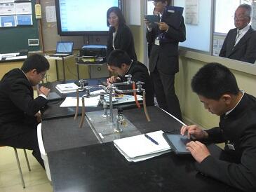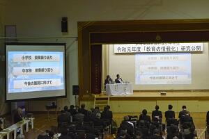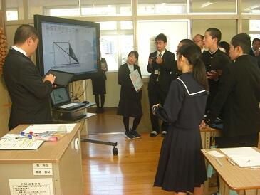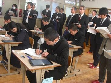 午前中は、2年生の数学、3年生の理科、全校の総合の授業を行ったあと、授業についての研修会をしました。午後は講演会等を行います。