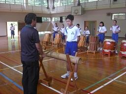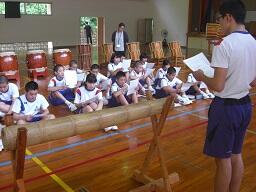 第1回の米良太鼓の練習です。1年生も早速太鼓を叩きました。別の道具で練習をしたようですが、実際に太鼓を叩くのは初めてです。