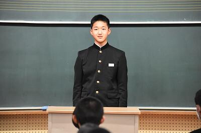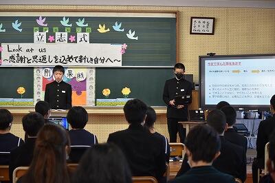 1月19日(水)、立志式を行いました。2年生9名が、それぞれ「志」を立て、これからの目標や夢を保護者、1・3年生や先生方が見守る中、力強く発表することができました。
