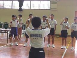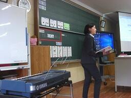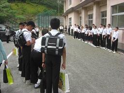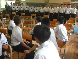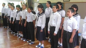 ↓ 校歌を披露 ↓ 湯前中の校歌を聴く