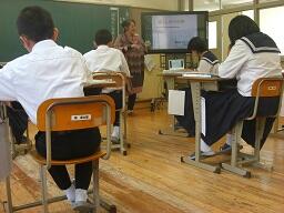 総合の時間に取り組んでいる「村応援プロジェクト」、1年生は第3回になりました。今年も株式会社アイロードの福永栄子さんにおいでいただき、西米良村のよさについて考えました。生徒からは自然や温泉、人の温かさなどの意見が出されましたが、子育て支援の充実や医療の充実などの指摘もあって感心しました。