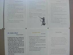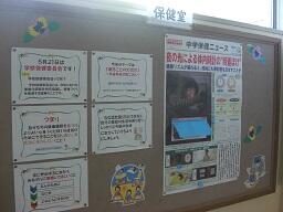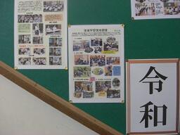 年度末に掲示物を全部外してしまうと殺風景になるので、ある程度は残しておきました。転入した職員もそれを参考にしながら少しずつ新しいものに代えてくれています。アクティブ・ラーニング(生徒が主体的・活動的に学ぶこと)が進むほど、授業中にいろいろな作品・成果物ができます。掲示物を通して、授業の充実ぶりも伺えます。