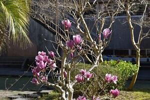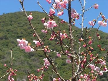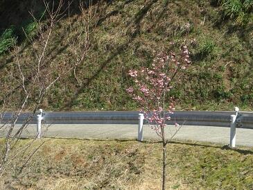 今週はじめあたりから開花を始めた桜があります。今日も風は強いのですが、きれいな青空になりました。