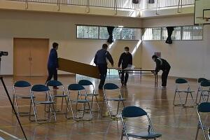 職員で卒業式の準備を始めました。明日は、プランターの花も飾ります。