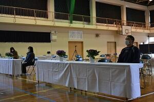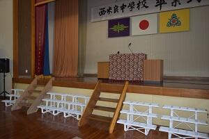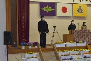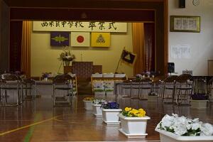 花や校旗なども飾り付けました。職員でリハーサルもやってみました。