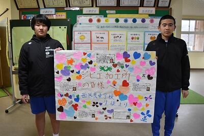 生活保体委員会1月の取り組みは「給食に感謝しよう!」でした。1月24~30日は全国学校給食週間と定められています。今回、給食センター他給食に携わっている方々へも日頃の感謝の気持ちを込めて全校生徒でメッセージ用紙を作成し、直接届けに行きました!