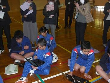 昨日(19日)、本年度第4回(最終回)の授業研究会を本校で行いました。授業は全学年の体育(バドミントン)でした。試合の様子を自分たちでタブレットを使って撮影して、戦い方が改善できているかを検討するという流れでした。