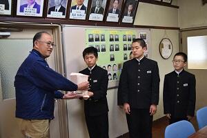 1月に生徒会による募金活動を行い、3日(月)に西米良村共同募金委員会の方にお渡ししました。生徒には文具をいただきました。ありがとうございました。