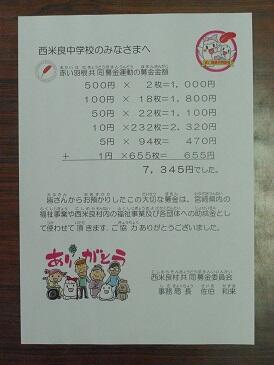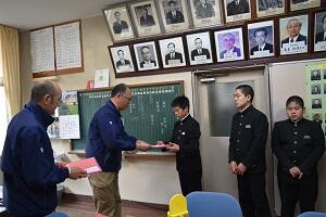 1月に生徒会による募金活動を行い、3日(月)に西米良村共同募金委員会の方にお渡ししました。生徒には文具をいただきました。ありがとうございました。