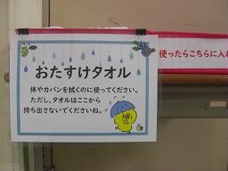 生徒玄関に「おたすけタオル」が準備されました。「雨で濡れた制服や鞄などを拭くことができるように」との温かい心配りです。感謝して、そして遠慮なく使ってください。米良太鼓の反省も第3回練習分が掲示されていました。学校は日々変化しています。