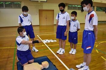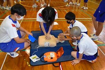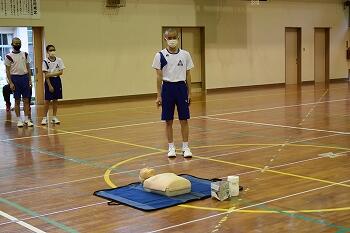2・3年生はこれまでの実習会を思いだしながら、1年生は初めての実習でしたので、これからの人生で今回の経験を活かせるように、各学年真剣に「胸骨圧迫」「AEDの使い方」について学んでいました。