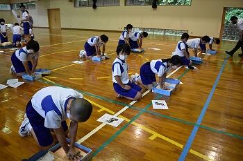 3密やコロナウイルス感染症を避けるため、班を2つに分けて行い、各班練習後には常に消毒を行うなど、様々な対策を講じたうえで実施しました。