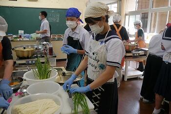 625日(金)は、年に1度のスペシャルday!婦人会の皆さんと2年生全員による「郷土料理教室」でした。婦人会の皆さんから2年生が調理を教わり、一生懸命郷土料理を作りました!