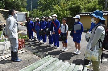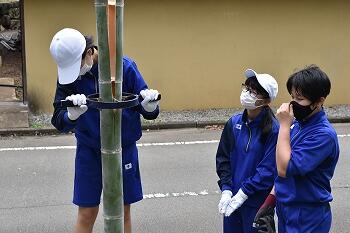 6月30日(水)、ゆたーと・川床塀製作を、2年生全員でお手伝いさせていただきました。竹を4等分に割り、それを塀の基礎に打ち付ける作業でした。どれも初めてやることばかりで、始めは慣れない様子でしたが、徐々に慣れ始めて楽しく作業をさせていただきました。