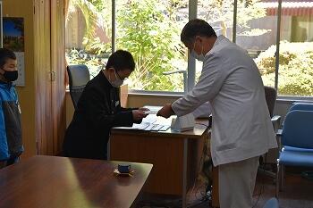 今回、頂いた図書券は、西米良中学校の今後の読書活動や教育活動に生かしていきたいと思います。お忙しい中、本当にありがとうございました。